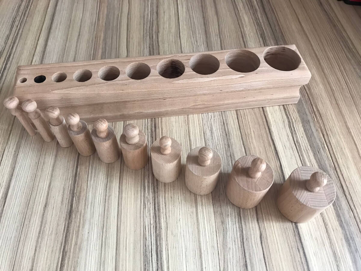 Blocul cu cilindri – nr.1 gros-subțire – este un joc iubit de copii, versatil, un joc didactic a fost gândit de Maria Montessori pentru a antrena copilul să observe, să compare obiectele, să formuleze păreri, să gândească și să hotărască; oferă copilului posibilitatea de a repeta atât cât are nevoie, antrenând astfel atenția și inteligența, pentru o dezvoltare la nivel senzorial, vizual, cognitiv și lingvistic.
